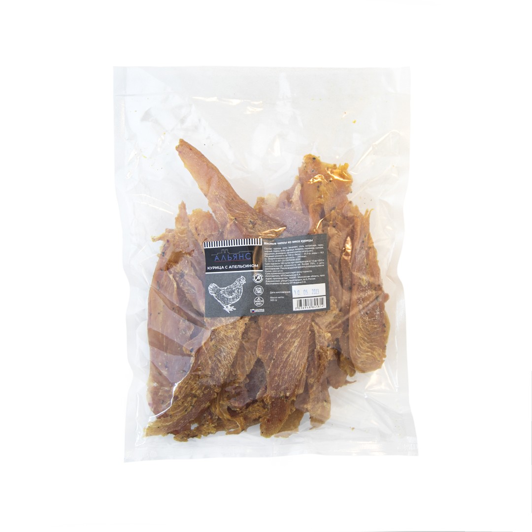 Мясо (АЛЬЯНС) вяленое курица с апельсином (500гр) – вкусная закуска к пиву, которую в нашей компании вы сможете купить по привлекательной цене. Каждая партия проходит строгий контроль качества – сначала проверку осуществляет производитель, а затем мы. Поэтому вы получаете только свежий и отборный продукт.